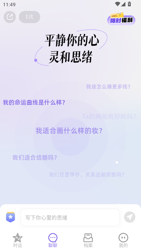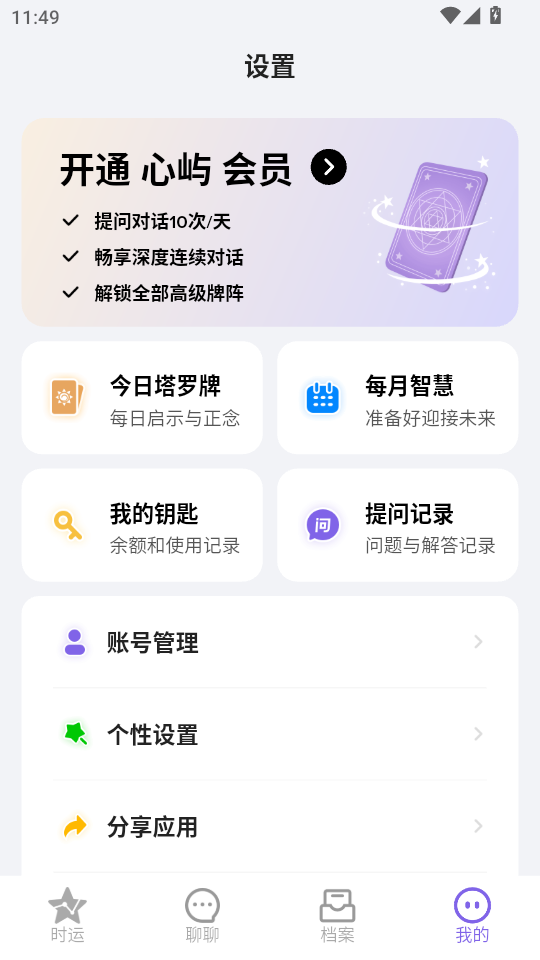 《心屿》是一款融合神秘学与AI技术的心理疗愈应用,以星盘解析、塔罗占卜、即时问答和深度沟通为核心功能。通过科学化解读神秘学原理,结合AI智能推荐牌阵与个性化分析,为用户提供从问题解答到自我成长的完整解决方案,打造沉浸式心灵探索体验。