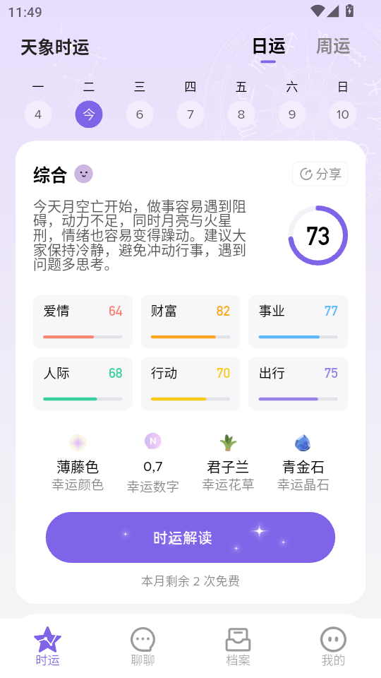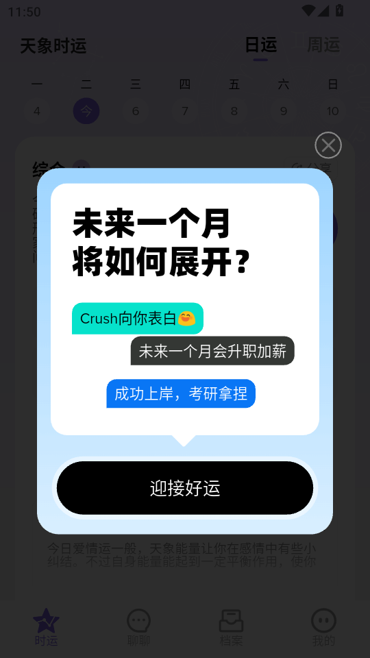 3、进到首页,可以看到下方有时运、聊聊等多种功能