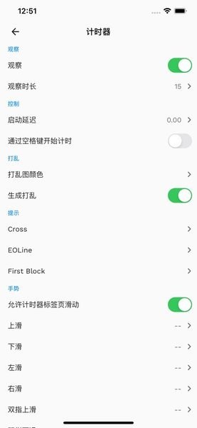 下图是计时器功能设置页,从图片的长度就可以看出功能很全面,快捷手势操作、个性化设置应有尽有。