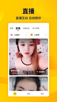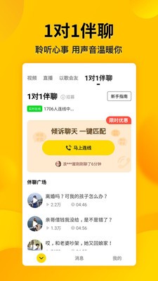 3、视频直播、以歌会友、一对一伴聊等,带你认识更多的朋友,和大家一起聊天