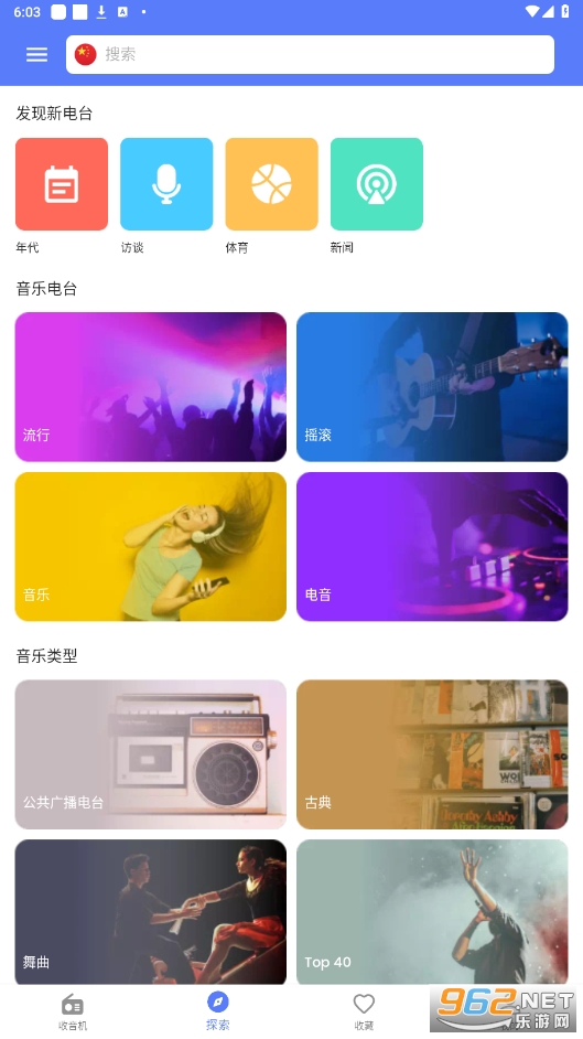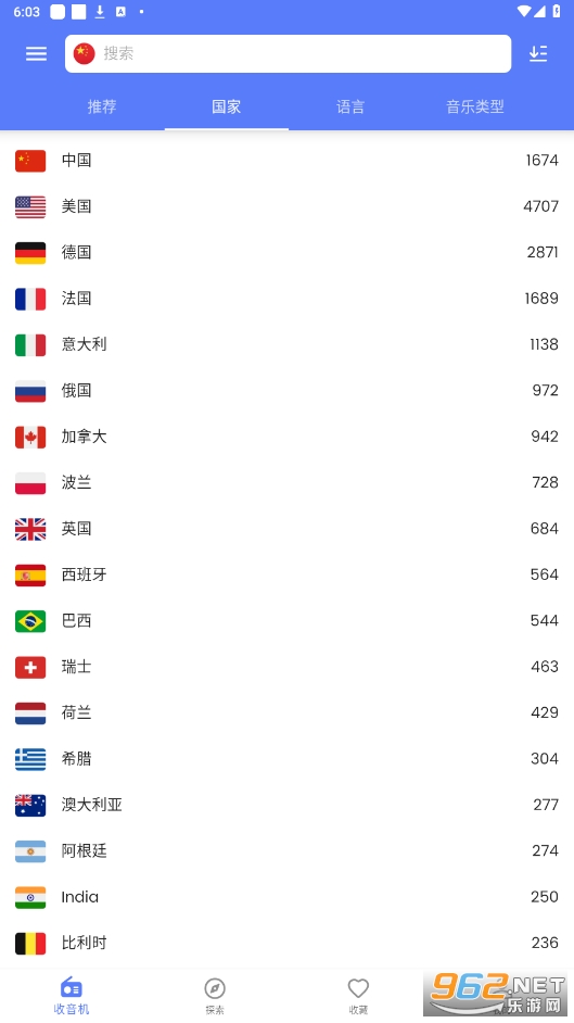 探索:按语言,类型和国家搜索您喜欢的广播电台。