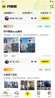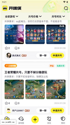 1. 为游戏爱好者提供全方位服务,共享游戏账号,汇聚众多游戏玩家。