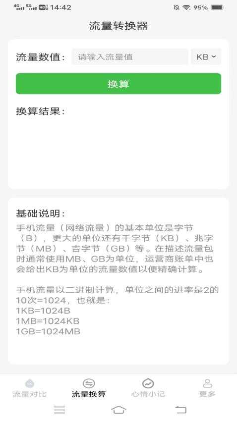 输入流量值对不同单位的流量数据进行一键换算,完成流量单位轻松转换操作。