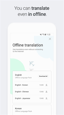 2、点击上方相对应图标即为对应翻译功能,例如中韩翻译”,如果想要离线使用翻译功能,可以选择是否下载语言包,如下图: