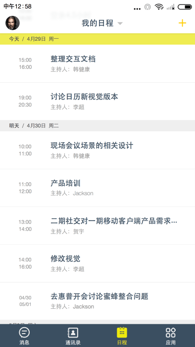 日程管理:提供用户查询联系人忙闲时间查询,快速安排会议。并且在会议时间到点的时候,发送提醒,立即一键入会。