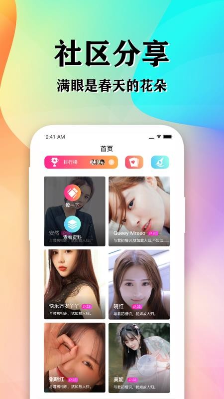 2、进入应用首页,查看人气用户头像和昵称列表