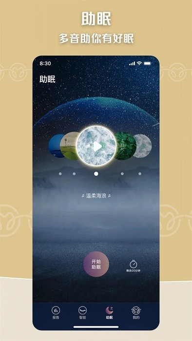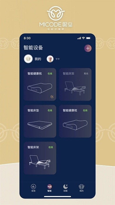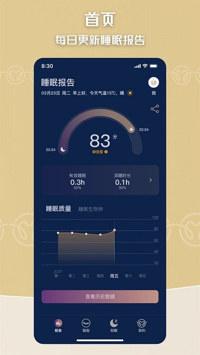 查看睡眠报告(需搭配眠虫发售的智能设备使用)。