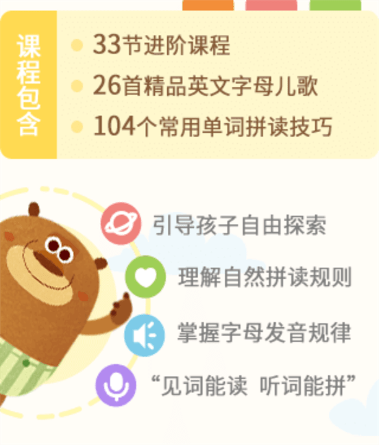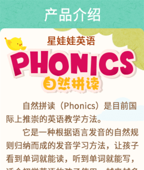 自然拼读(Phonics)是目前国际上推崇的英语教学方法。它是一种根据语言发音的自然规则归纳而成的发音学习方法,让孩子看到单词就能读,听到单词就能写,适合初学英语的孩子使用。越来越多的中国孩子借“自然拼读”这个工具,快乐高效地学习英语。