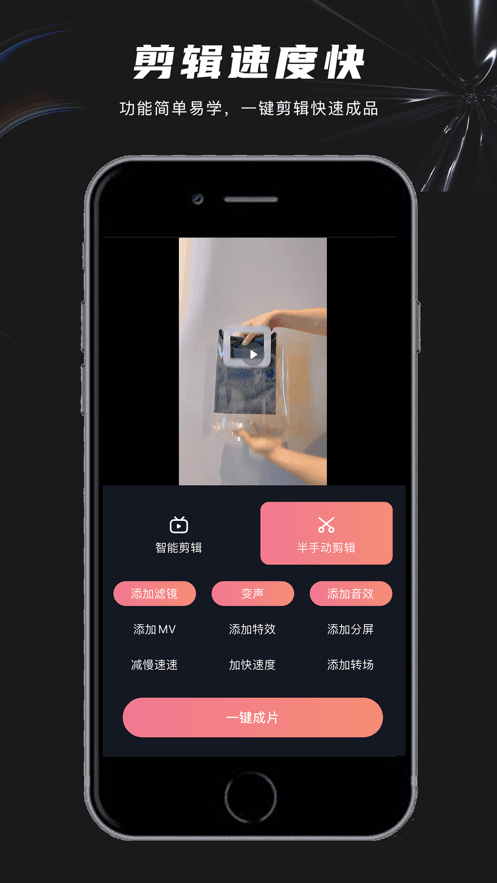 一键剪app,短视频带货必备的视频剪辑软件,精选模板,素材丰富,轻松剪辑视频,超多素材免费用,软件支持智能剪辑、手动剪辑、半手动剪辑这三种剪辑方式,一键添加特效,创作精彩小视频。