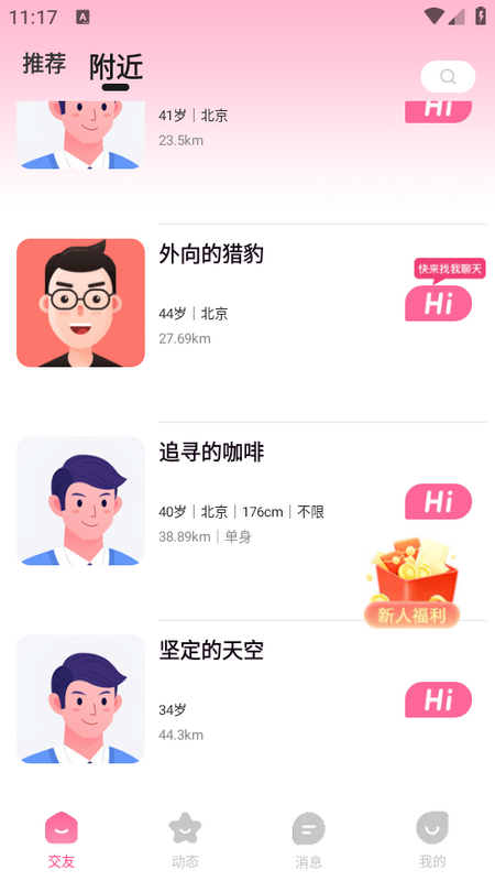 3、【附近交友】附近的人,附近约会社交软件,附近人交友,聊天不再默默一个人,再晚聊天也有人回复。
