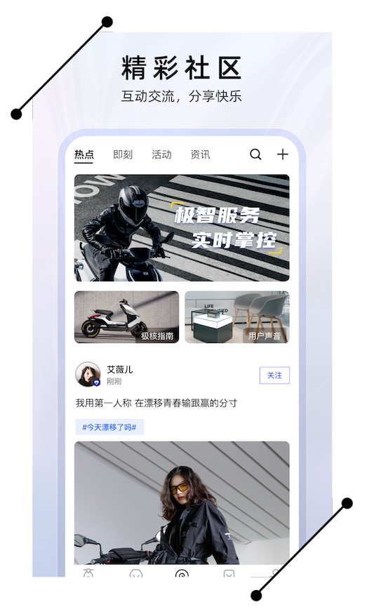 在ZEEHO极核电摩软件中,用户还可以加入互动社区,与其他电动摩托车爱好者分享自己的骑行经历、交流用车心得,让生活更加有趣。