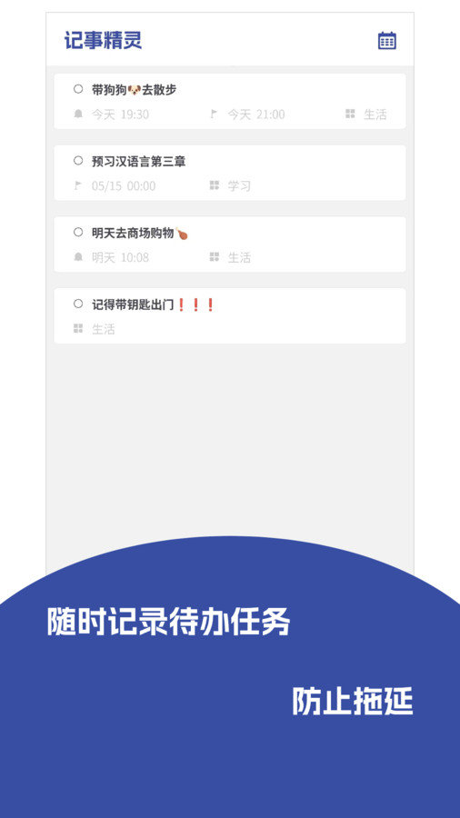 记事精灵是一款手机记录软件,使用它可以做一些日常生活上或者工作上的记录,用户可以通过这款软件把生活中的重大事件记录下来。APP还支持语音功能,对于大家不想打字的用户来说十分的便捷。相信这款软件一定会对你有帮助,快来下载。