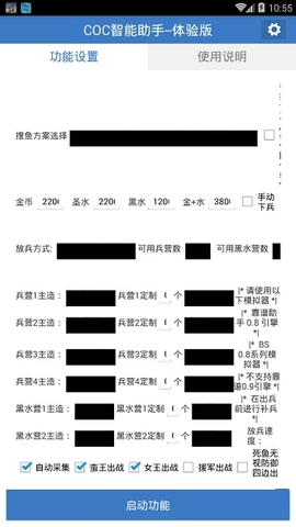 1、自动化任务执行:用户可设定软件执行日常任务,如自动采集金币、圣水、暗黑重油,自动建造和升级防御设施、兵营、实验室等建筑,以及自动训练指定兵种和法术。