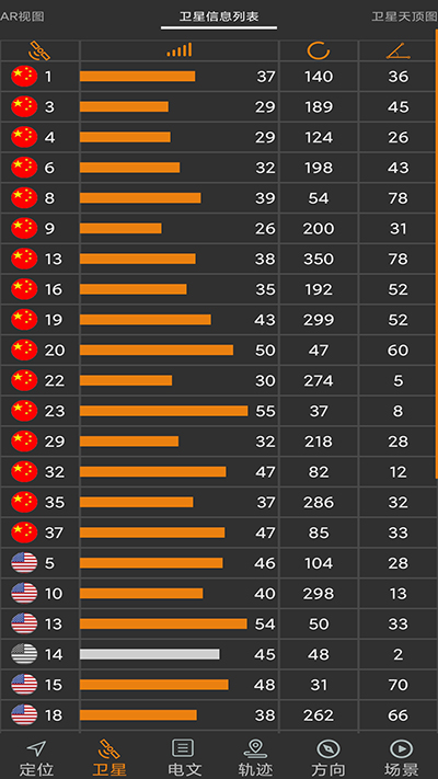 2、在界面中可以看到卫星的分布情况,想要更详细的可以点击卫星信息列表。