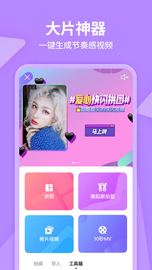 美拍相机是一款非常受用户们喜欢的视频美颜工具,视频一键同款,直接将拍好的视频,选择喜欢的背景素材,全新的视频快速制作出来。视频中加入了不同的背景音乐,不同的特效,可以帮助用户们制作出各种有趣精彩的照片视频。