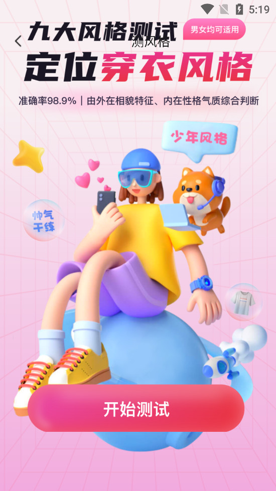1.穿搭风格测试:测风格能够根据测试结果测试出用户的穿搭风格,推荐适合用户的衣服版型、面料、甚至参考明星等搭配方案。如果你是男生,也不用担心,我们的穿搭助手同样适合你,可以提供男生穿搭的专业建议。
