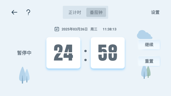 3、番茄钟计时器:融合番茄钟工作法的计时器。非常适用于工作以及学习的场景。搭配专注模式,开启白噪音,效果更好。