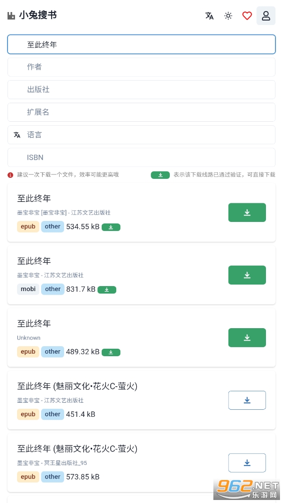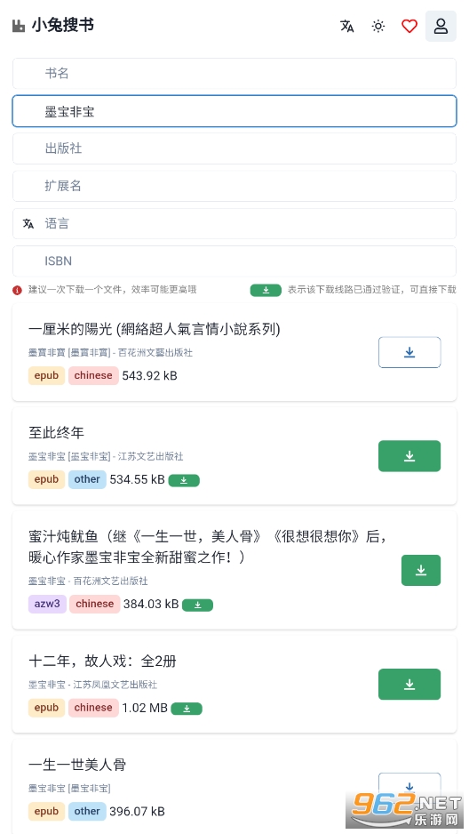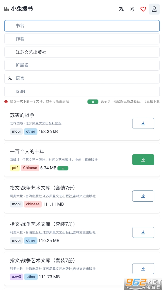 《小兔搜书》是一款专注于电子书搜索的高效工具,它以极速的搜索体验和清爽简洁的界面设计,为用户带来了全新的阅读搜索体验。无论你是寻找热门小说、经典名著还是专业书籍,小兔搜书都能迅速帮你找到并呈现丰富的资源列表。其独特的算法确保了搜索结果的准确性和相关性,让你能够轻松找到心仪的电子书。