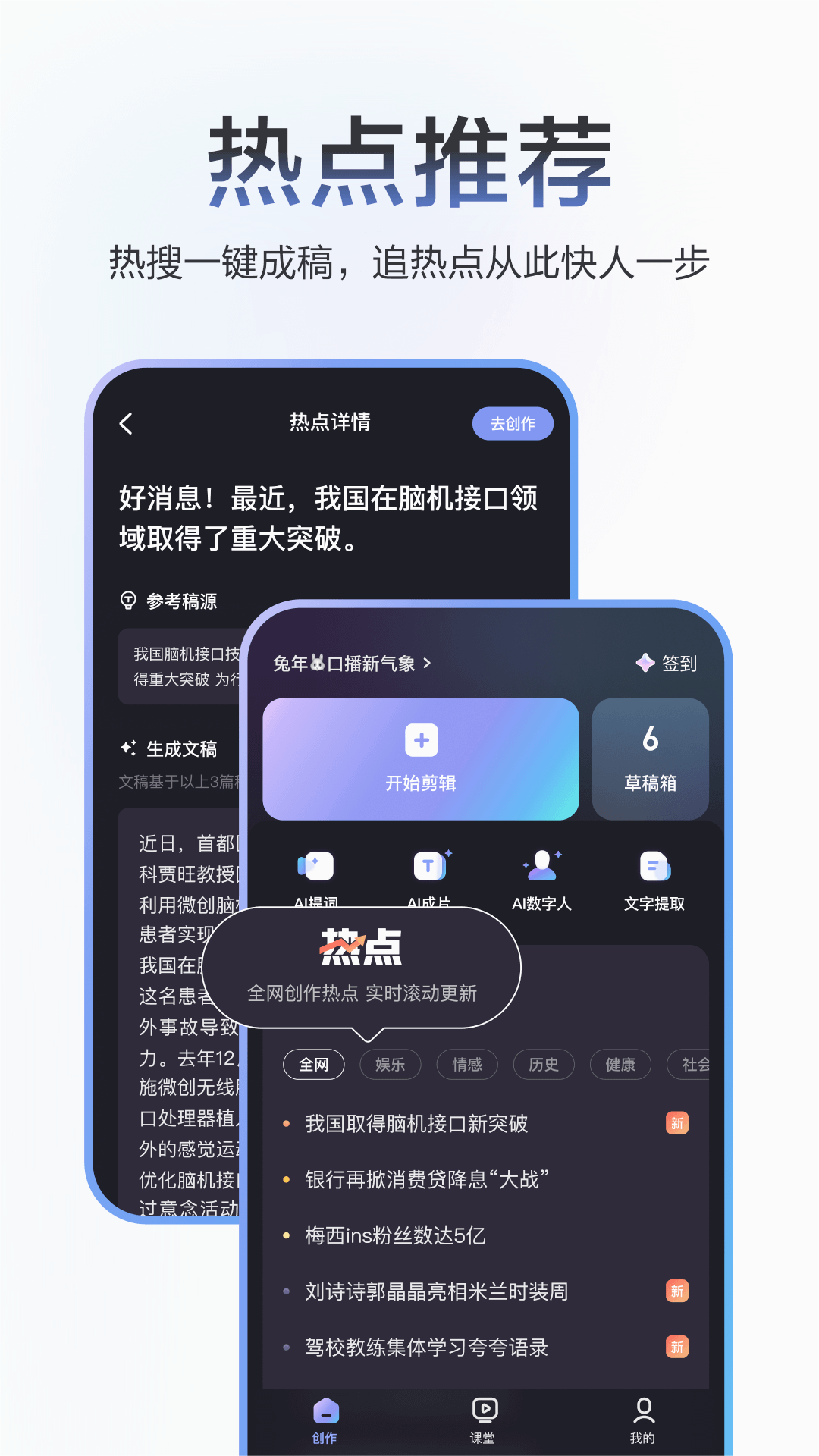 度咔剪辑免费版是一款AI视频创作工具,提供从热点推荐到一键包装的一系列功能,软件能够降低创作门槛,提升效率。它集成了AI成片、改写、提词和快速剪辑,覆盖视频制作全流程,让用户轻松产出优质视频,展示个人才华。