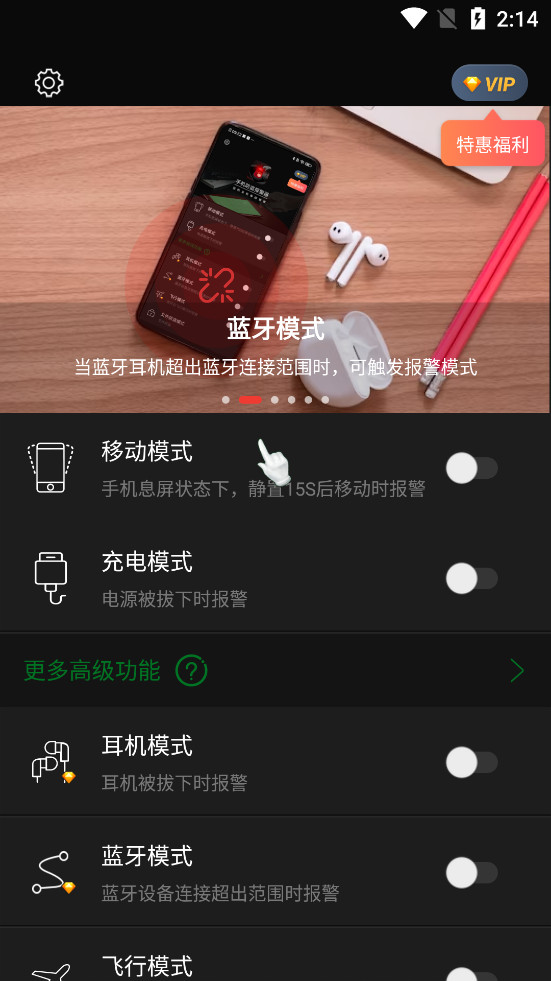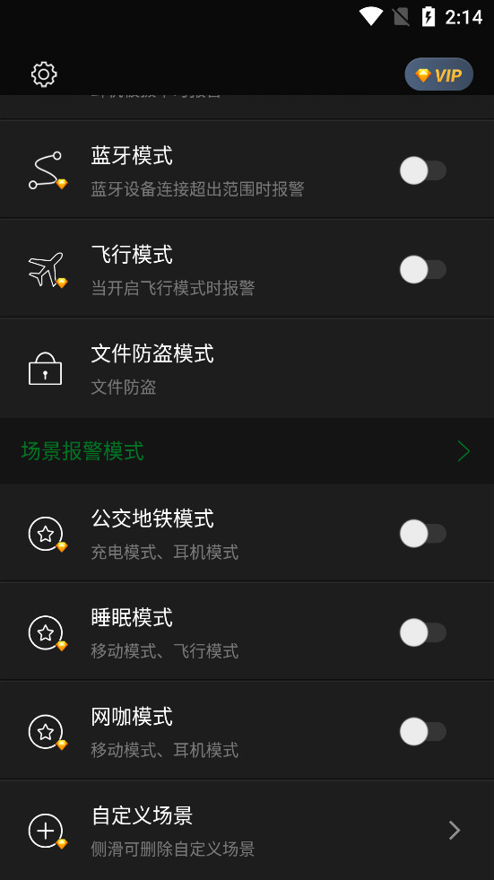 手机防盗报警器有着多种不同的模式,在不同的场景选择合适的模式即可