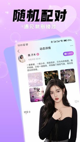 私密聊天:用户遇到心动的人后,可以直接发起私密聊天,保护用户隐私,让交流更加深入和亲密。