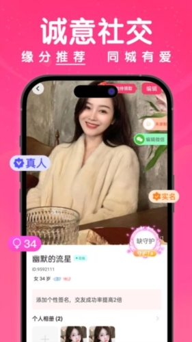 入驻平台的用户都是经由多重审核的真人用户,为大家创建真实可靠的交友平台。