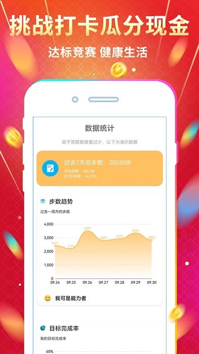 3、可以自定的设置一个目标,每天都可以完成目标数