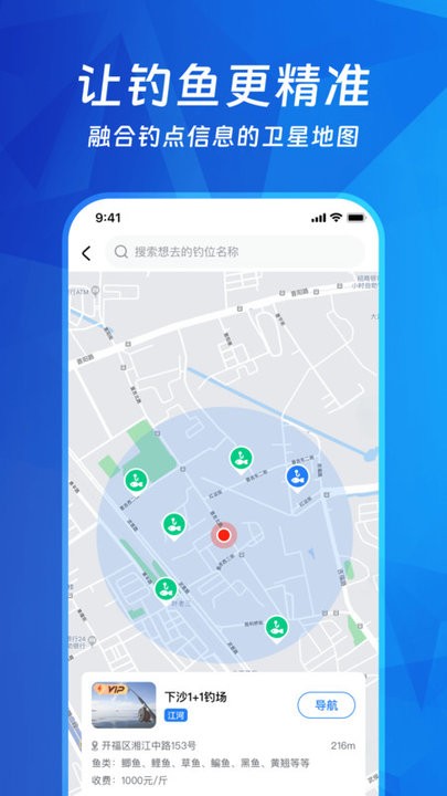大量钓点和钓具店信息,一键导航栏到钓点大门口,从此不必担心找不着钓鱼场了。