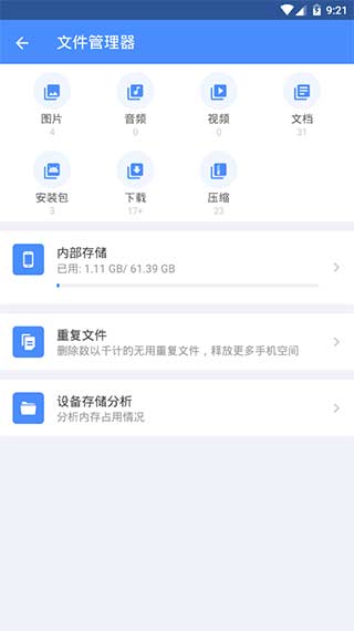 释放空间:文件管理器、应用管理、高级清理、系统应用卸载、图片管理