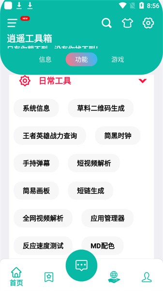 逍遥工具箱是一款非常强大的手机端免费工具控制软件,用户在这里可以找到很多功能,可以根据需求进行搜索。app适用于多个场所,对多种电器进行网络控制,用户可以随时随地的开启更多电器,给大家的工作和生活提供了非常便利的条件。