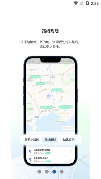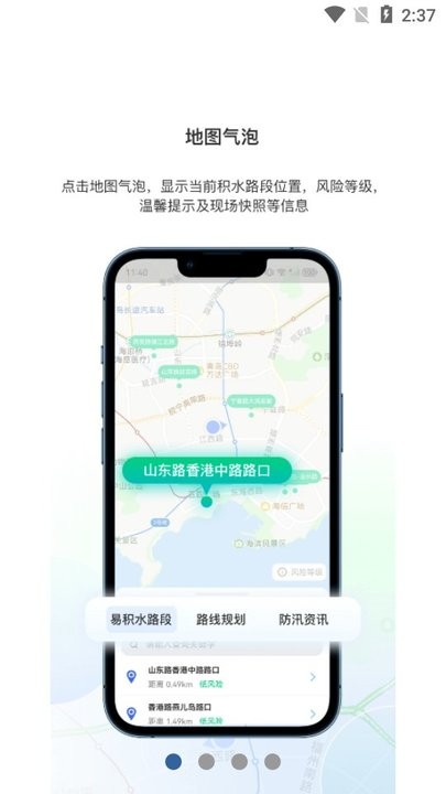 为青岛市民在汛期提供易积水路段信息查询、路线规划、防汛资讯三大功能,地图展示易积水路段实时信息,方便市民在雨天合理规划出行方案。