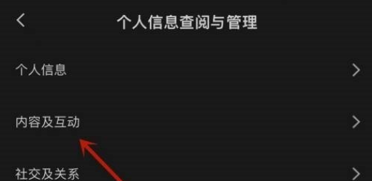 2、然后在个人信息查询与管理中,点击内容及互动。