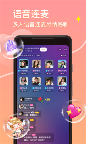加入聊天室,与多个用户实时语音互动,享受热闹非凡的交流体验。