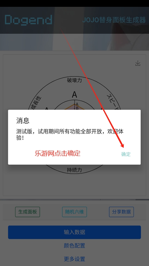 1、查看jojo替身面板生成器ogend官方消息以后,点击“确定”进入。