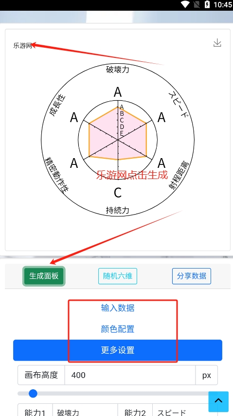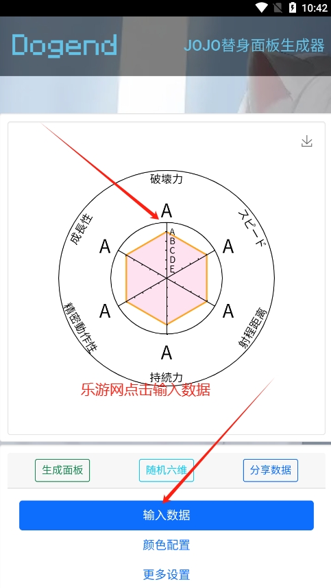 1、设定参数:在右侧输入替身名称、六维数值(破坏力、速度等),支持颜色代码个性化填充。