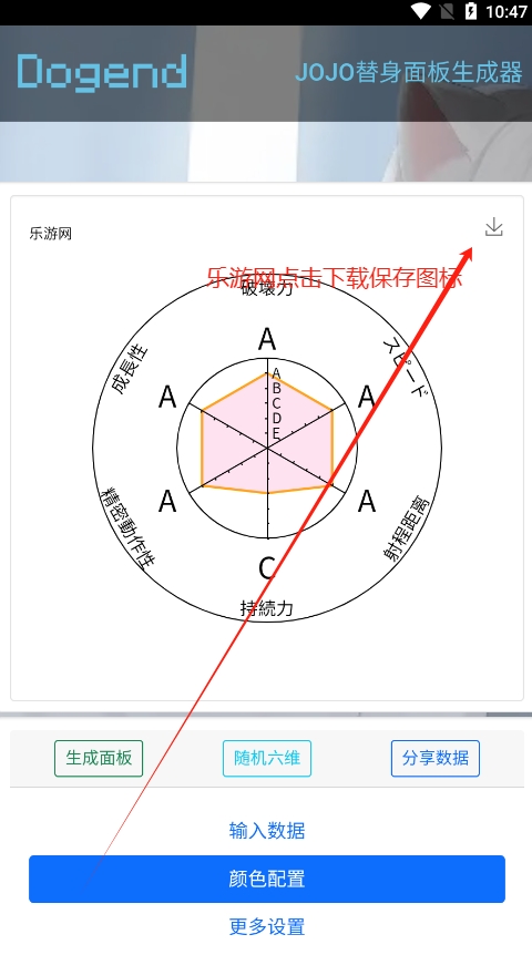 2、生成与保存:点击【生成替身面板】按钮,通过六维图右上角下载图标保存为图片,手机长按保存,电脑直接保存。