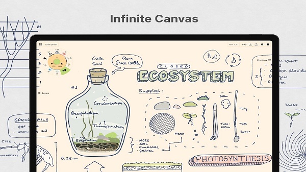 一张拥有可选的纸张类型和网格的无限大画布