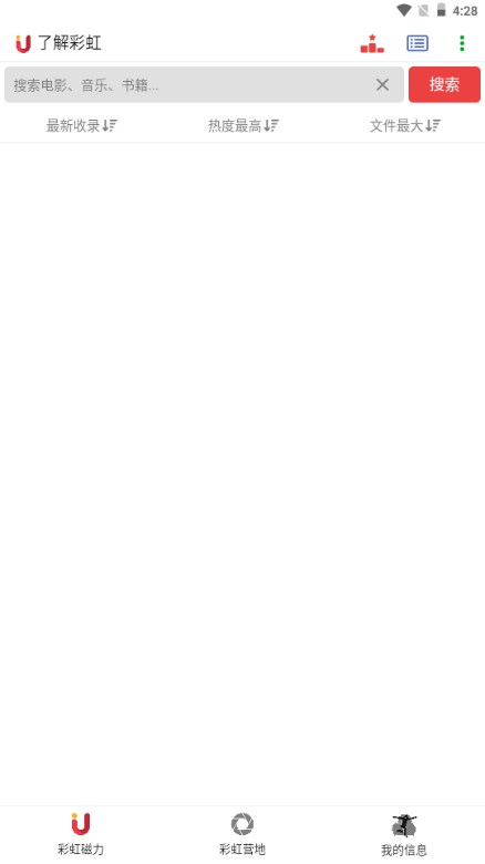 彩虹磁力是一款专业的磁力搜索软件。可以很好的满足不同用户的需求,全新的体验升级。全网磁力链接均可以在这里搜索,只需要输入相对应的关键词,而且软件是永久免费的,下载速度也超快,感兴趣的快来下载彩虹磁力吧。