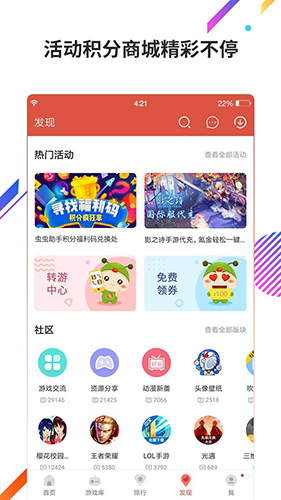 5、点开广场,有平台推荐的热门活动,还有游戏社区,玩家可以社区相互交流;