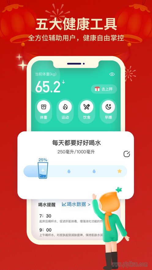 使用称体重、步行运动、饮食打卡、睡眠记录分析和智能设备连接等工具,全面了解身体状态,把身体健康管理得棒棒的。