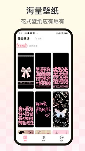 1、海量壁纸资源:拥有数百万张高清壁纸,涵盖风景、动漫、明星、汽车等多个分类,满足不同用户的个性化需求。