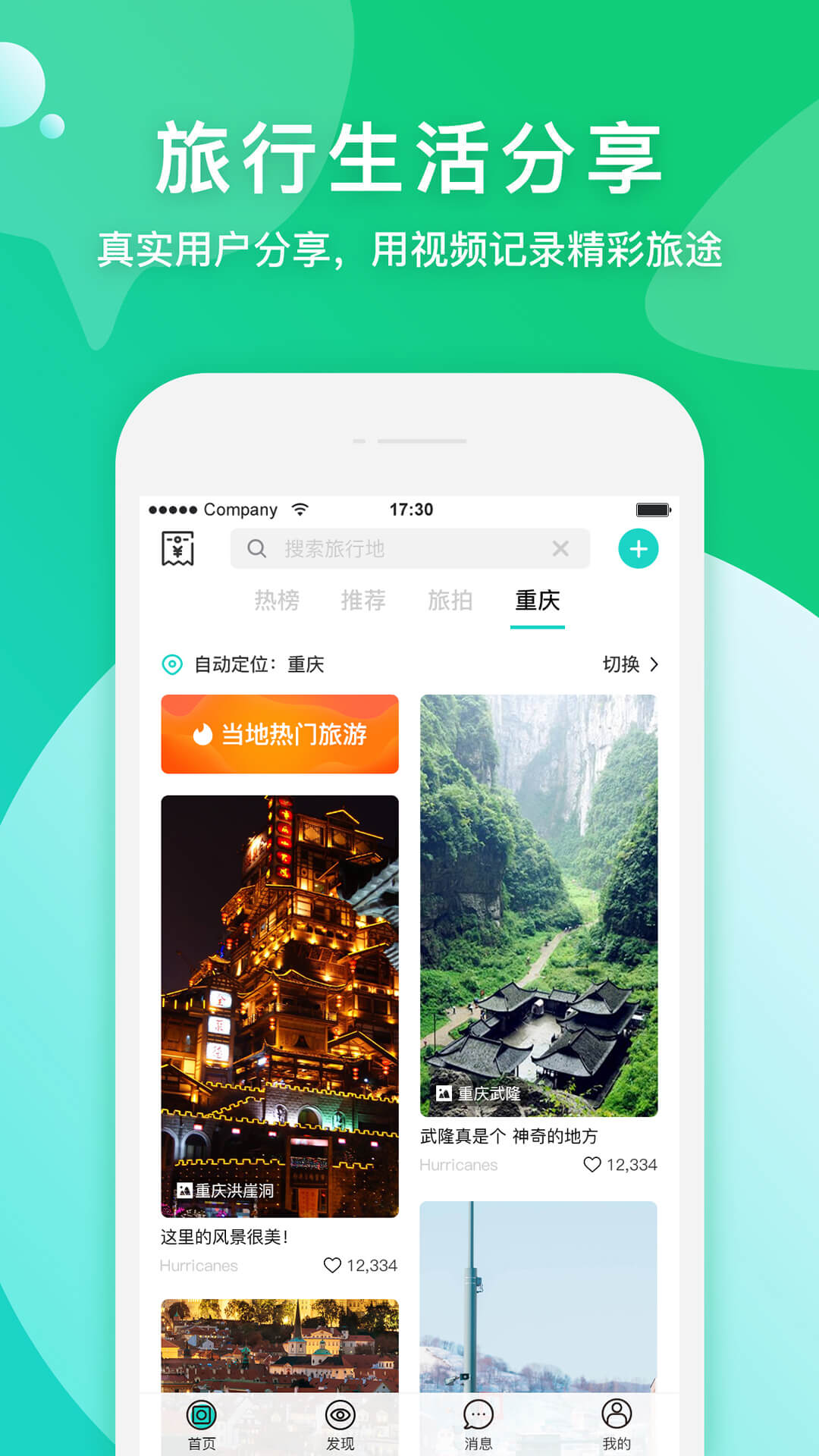 休闲旅游短视频分享社区,随时随地上传旅行短视频。10s至5min更多时长,随心记录轻松嗨拍。