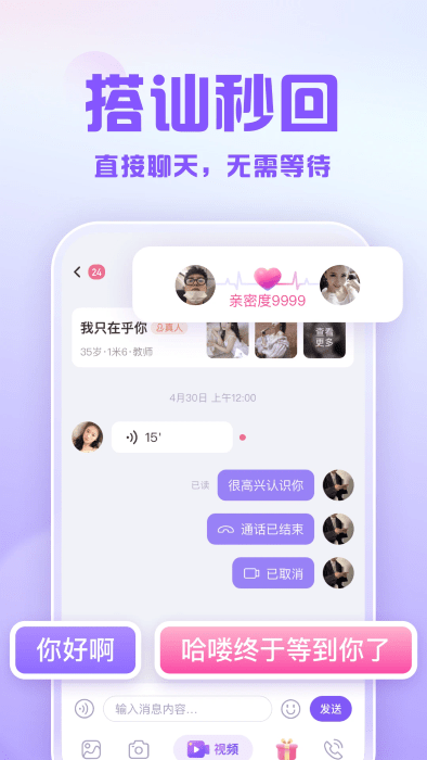可亲最新版是一个为优质单身男女量身定做的视频聊天、交友、约会的陌生人社交平台,平台真人认证用户均经过严格审查,高效零距离,让你快速在这里找到有趣的人,拒绝照骗交友,感受聊天交友带给你的乐趣。