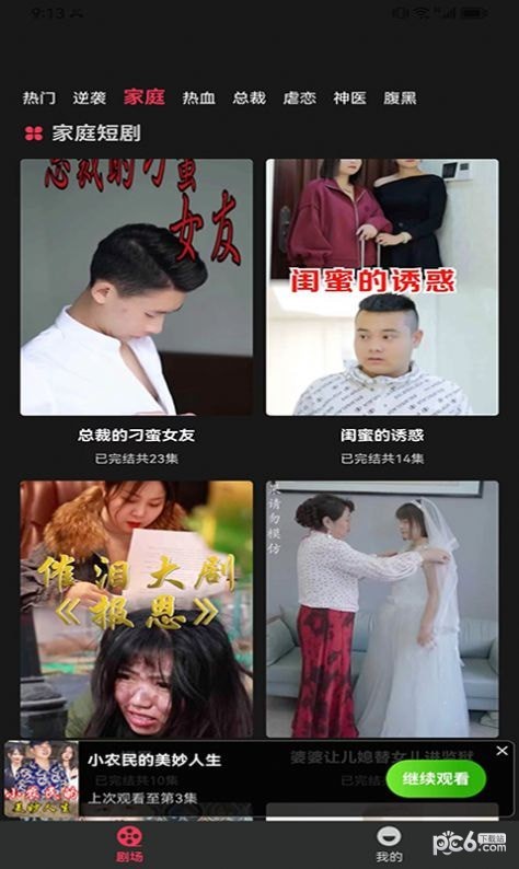 1、应用内的短剧包括了多种不同的类型,适合不同年龄段的观众;