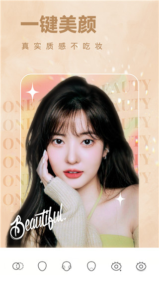3、一键自拍在这给自己添加各种好看的妆容和效果,精准微调给你来设置好一切;
