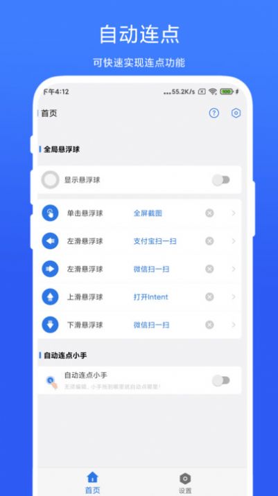 自动连点小手是一款完全免提的自动触控设备软件,适用于各种需要反复点击操作的游戏和软件。界面简洁易用,支持多点触控。完全免费,无任何广告和插件,避免用户在使用过程中受到干扰。满足不同用户的连接需求,一键在线操作。