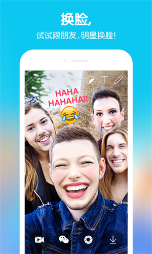 脸部自动识别,轻松拍摄激萌或恶搞的视频或图片,告别单调,让拍照更有趣,从此爱上自拍!