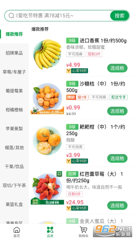 百果园app是一款支持送货上门的生活服务类手机软件,店铺遍布中国九大省区和19个大中城市社区、街道,为用户提供包括等在内的优质服务,在这里只卖最好的水果,含有各种各样的新鲜水果,包括国产和进口的水果,由专人到农厂直采,源头可追溯,保证新鲜,极速送达,让你在家就能享受美味的水果,让新鲜离你更进一步。
