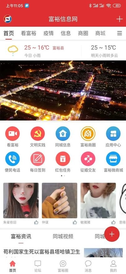 富裕信息网app是一款给当地居民带来很多方便与帮助的生活服务软件。每日的热点、本地的资讯,及时在线更新,时刻掌握,本地好友,互动永不离线,福利多多,优惠享不停,便捷的本地服务,等你来发现,走过路过的小伙伴们可千万不要错过了,快来下载使用吧!