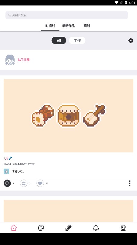 3、dotpict 对作品的管理十分详细,你可以清晰看到作品的名称、色盘、创建时间等等信息。